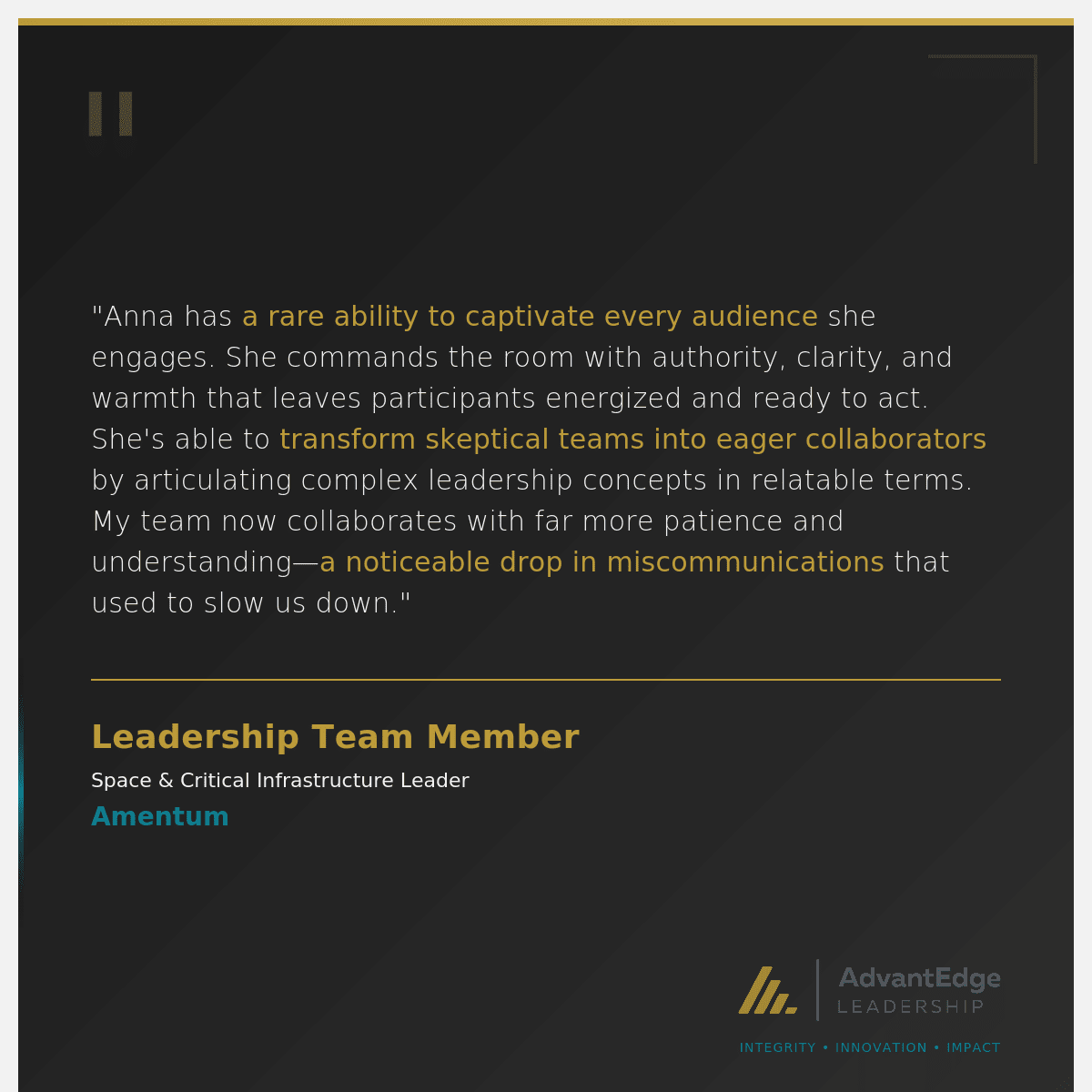 AdvantEdge Leadership specializes in executive coaching, team development, and organizational transformation for companies committed to building cultures of trust, innovation, and high performance.